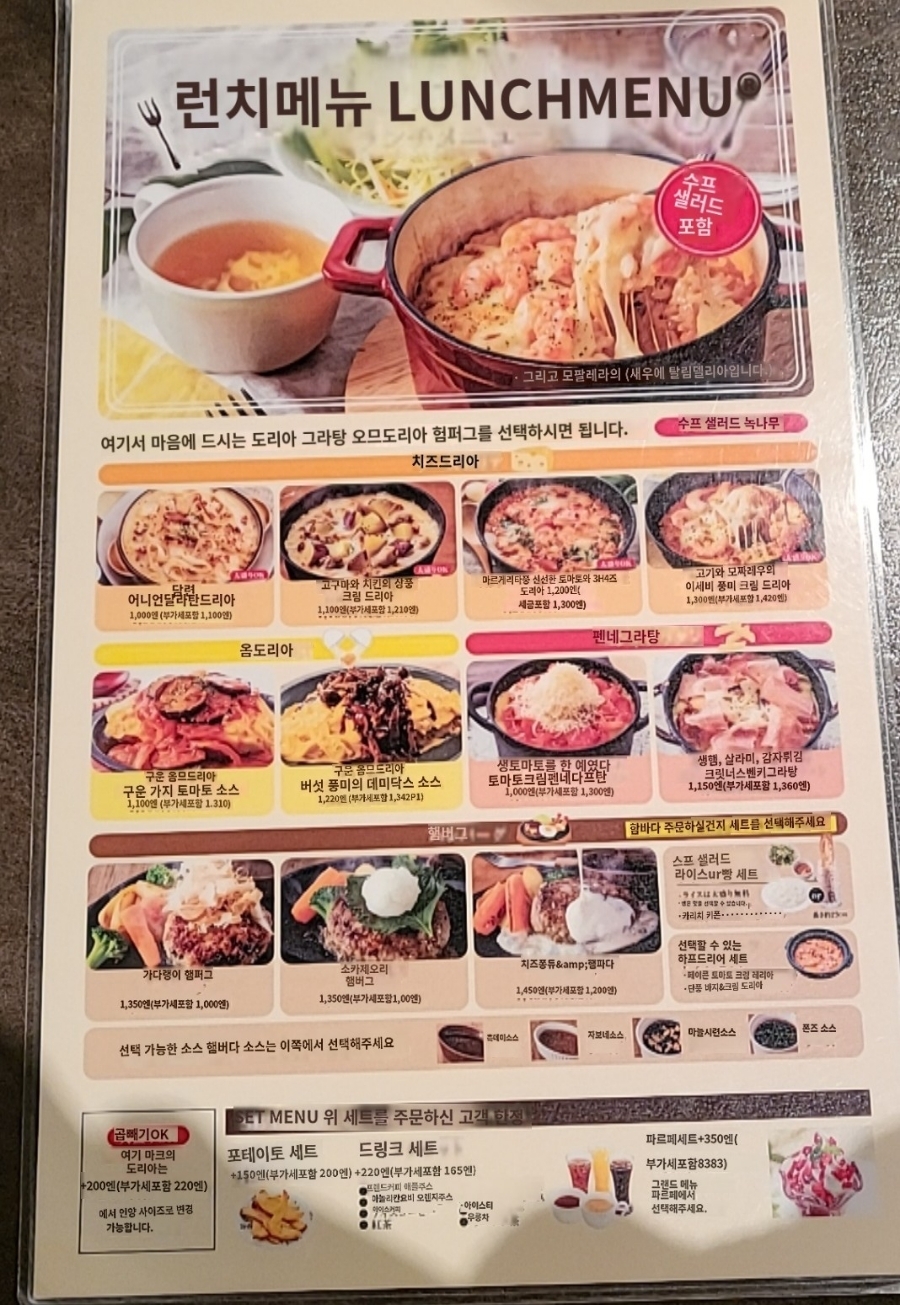 저는 마르게리따 도리아, 남편은 함바그 세트(크림도리아 선택 가능) 시켰어요.